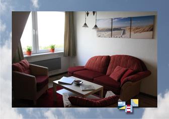 Das gemütliche Wohnzimmer, mit tollem Blick auf den Kniepsand